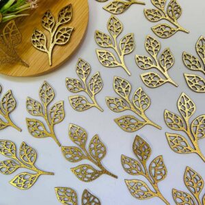 Aplique Folhas ramo em Lonita Metalizada dourada -2 unid.