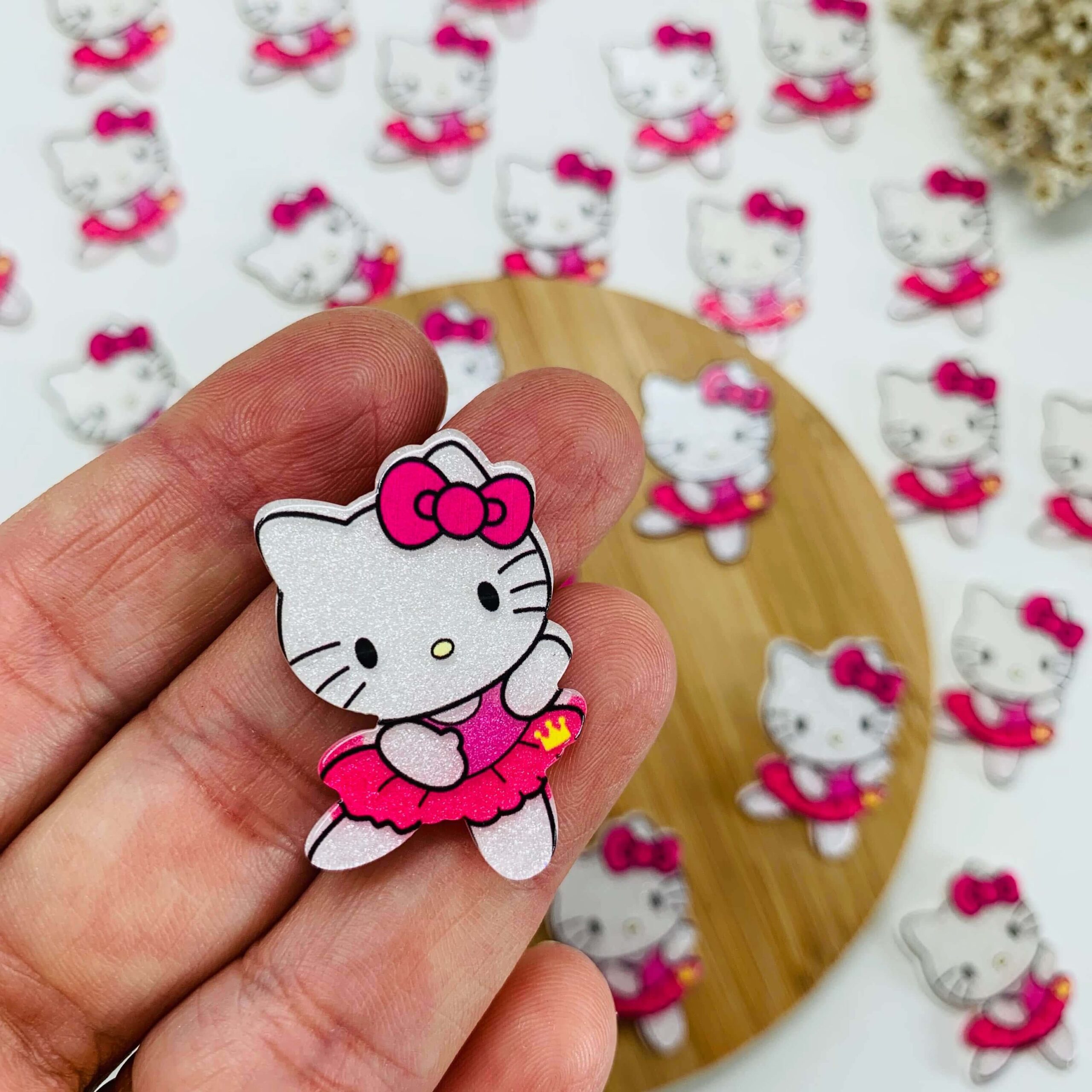 -2 Aplique de Laços Hello Kitty acrilico glitter 3,3×2,3cm