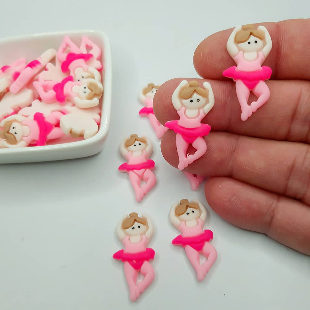 -02 unidade Aplique Bailarina Rosinha Resina – 2unid