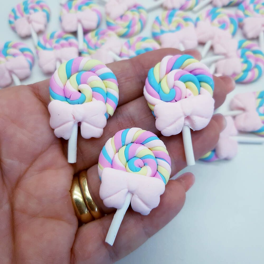Aplique Biscuit Pirulito com Lacinho candy -2unid