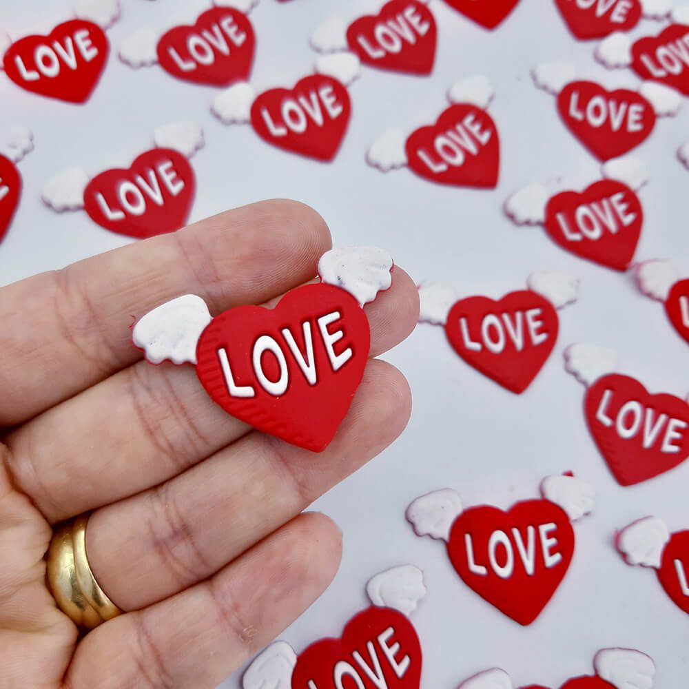 Aplique coração Asa de Anjo Love Emborrachada- 2unid