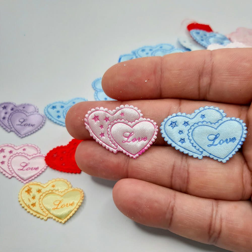 -05 unidade Aplique Coração Duplo renda Acolchoado Glitter- 5unid