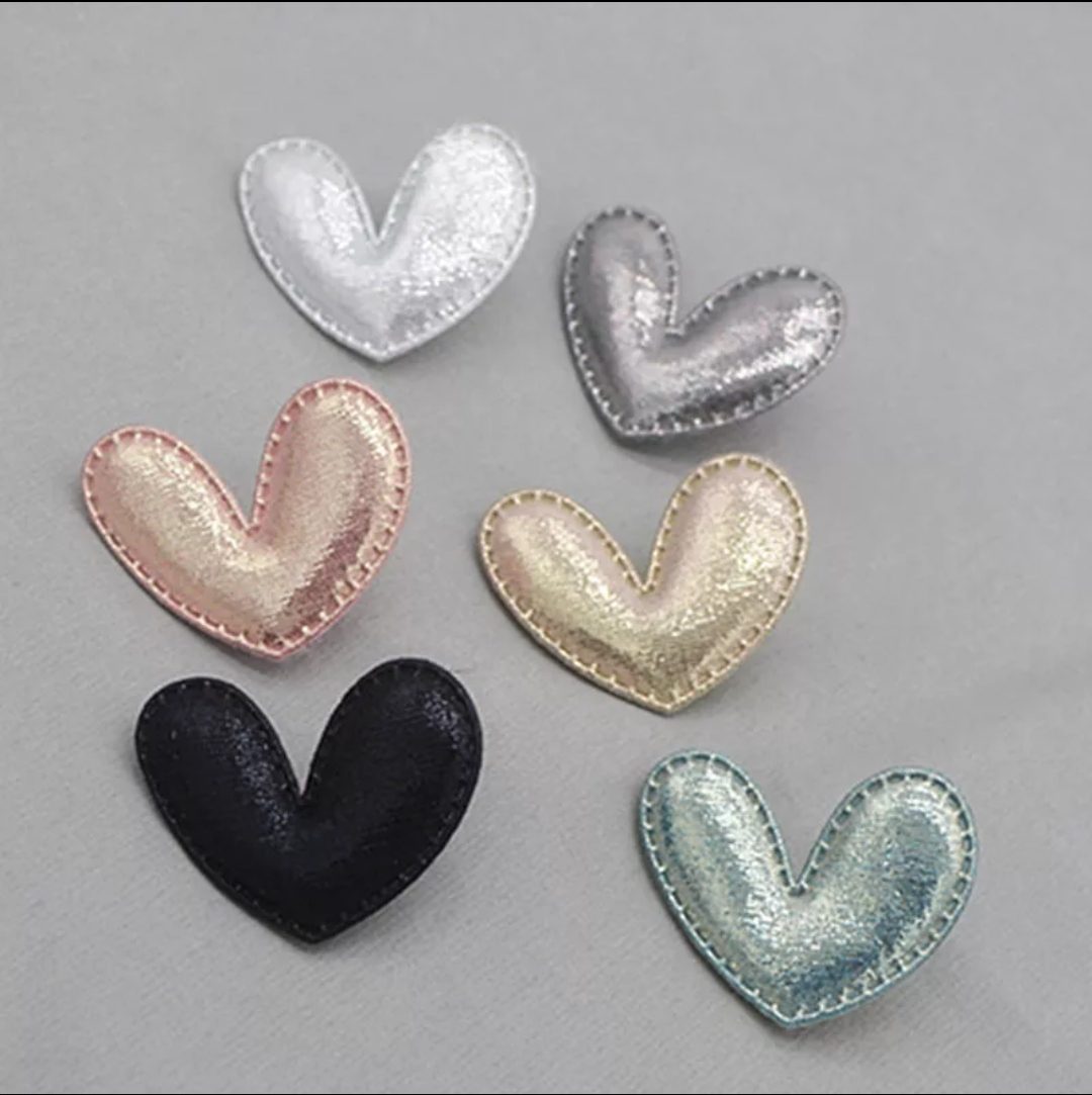 Aplique Coração Metalizado Acolchoado Pespontado -2 unid