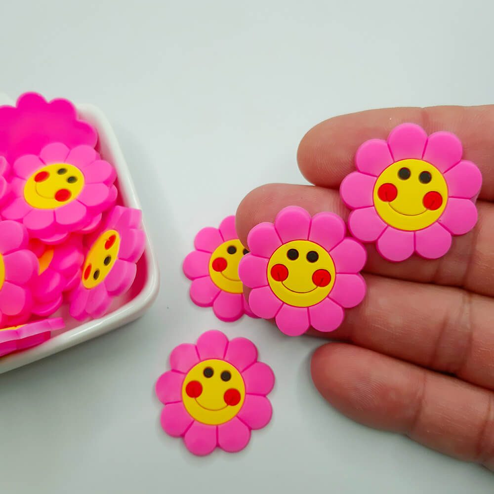 -02 unidade Aplique Flor sorriso Emborrachada rosinha- 2unid