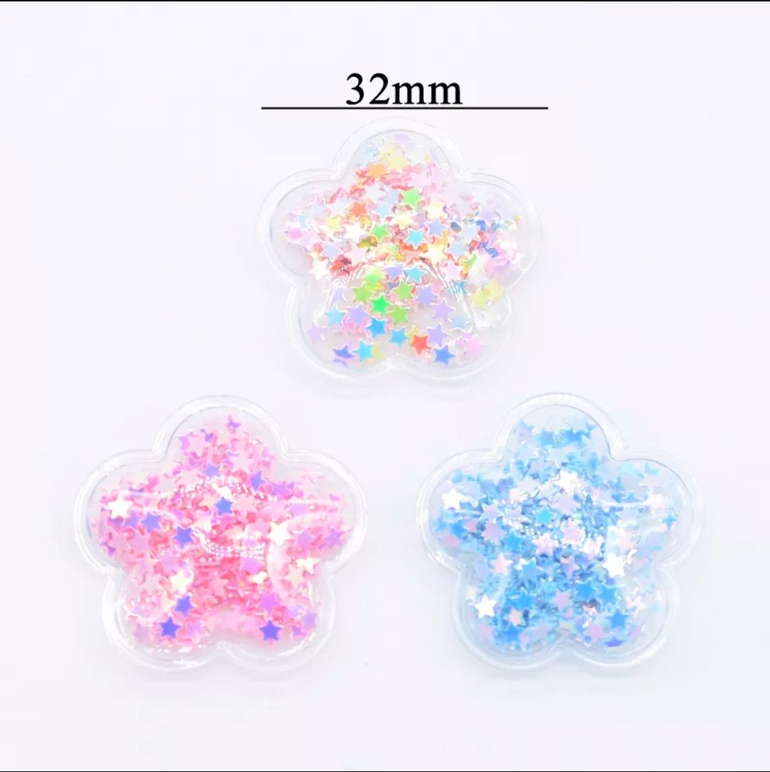Aplique Flor Transparente com confete – 3 unidade