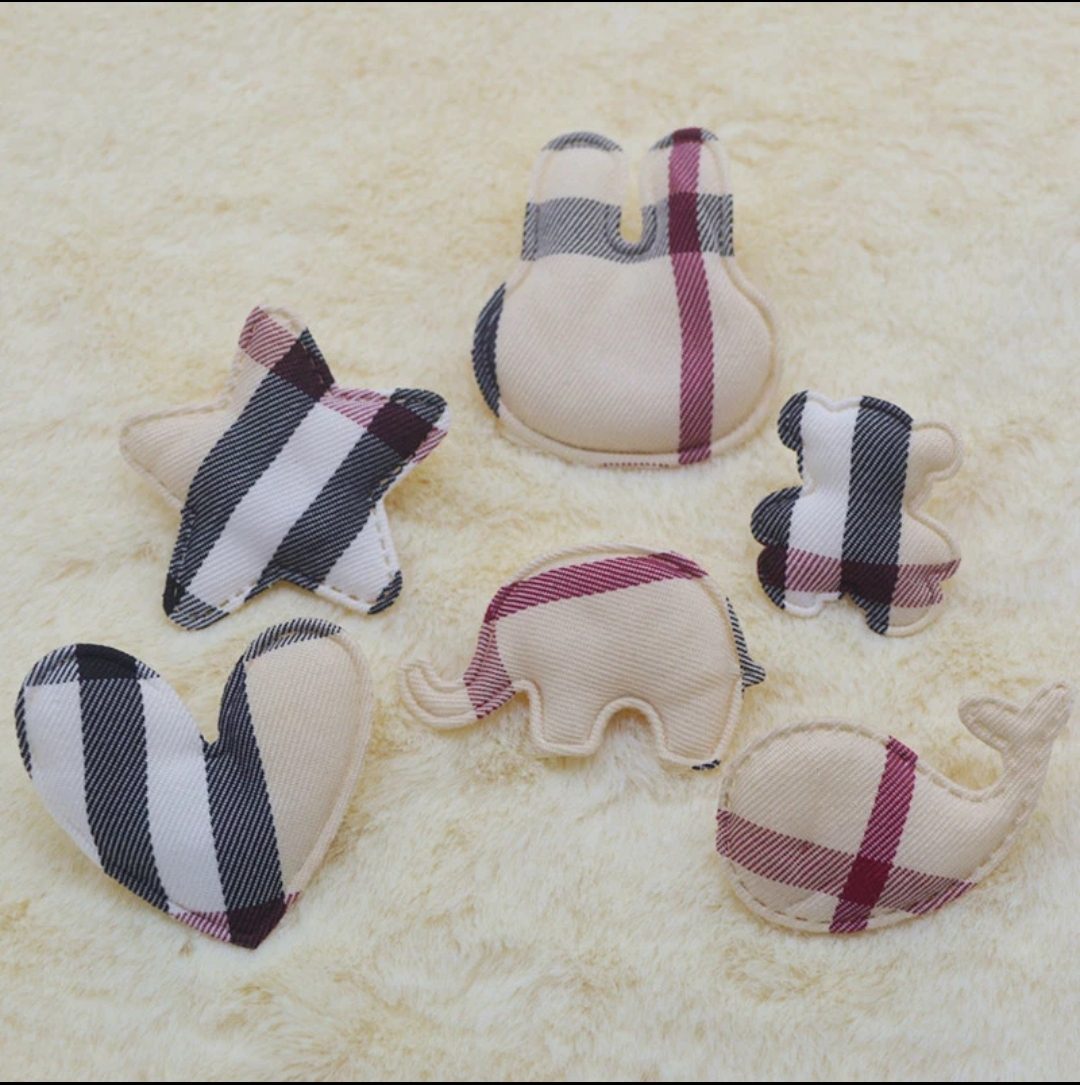 - Tamanho: Coelho 5×4,60cm, estrela 4,6cm , baleia 5x3cm, Elefante 5x3cm, Coração 4,6cm, urso 3,4x3cm