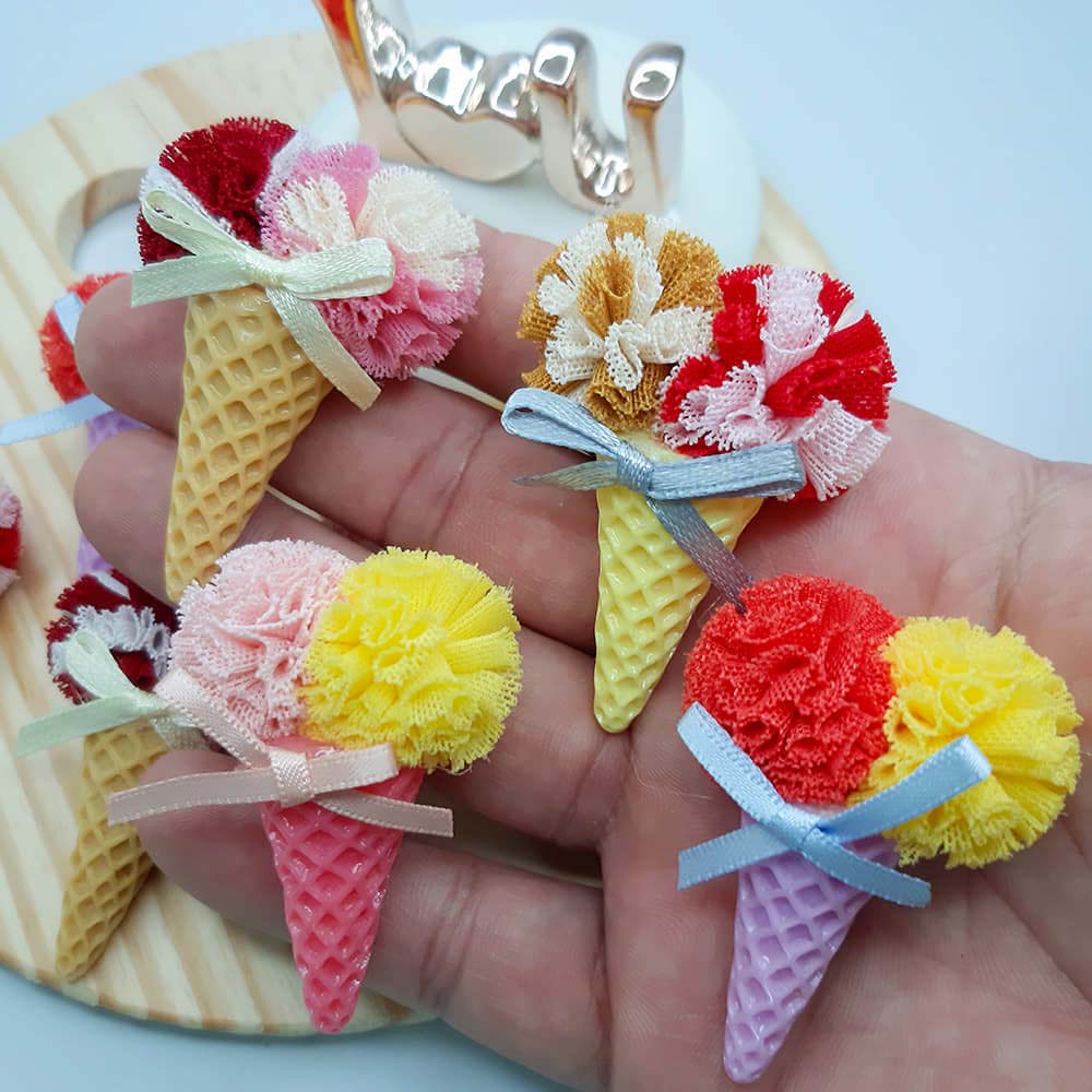 -4 unidade Aplique Sorvete Casquinha 2 Pompom -4unid