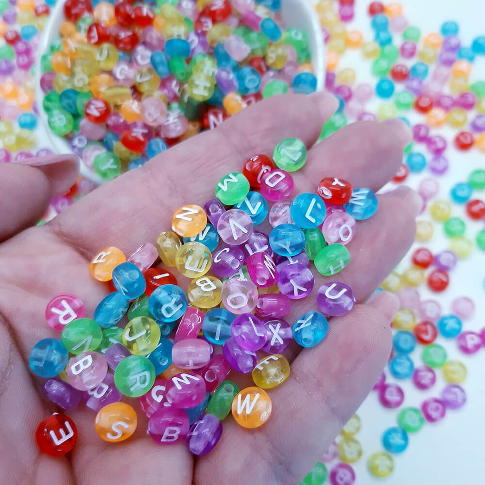 -50 gramas Letrinha Alfabeto Translúcido Colorido 7mm- 50 gramas
