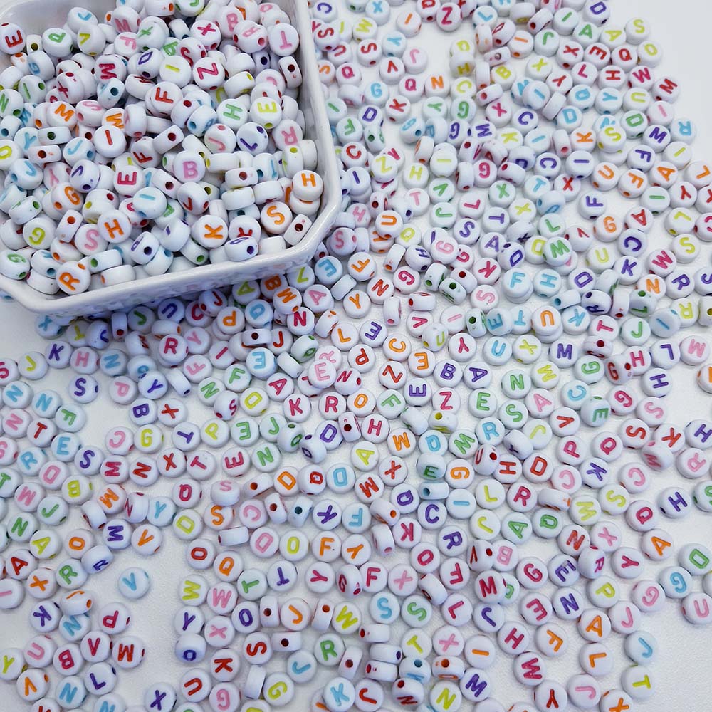 Miçanga Alfabeto Letrinha Arredondado 4x7mm