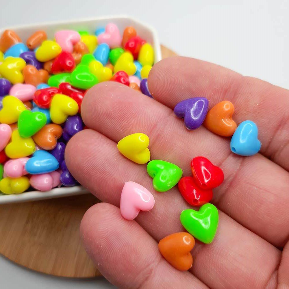 -Miçanga Coração Colorido Leitoso 10mm