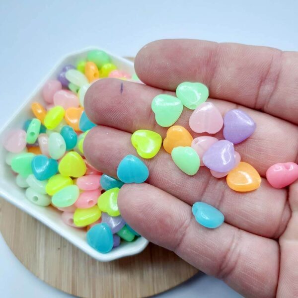 -Miçanga Coração Fluorecente Brilho no escuro 8mm