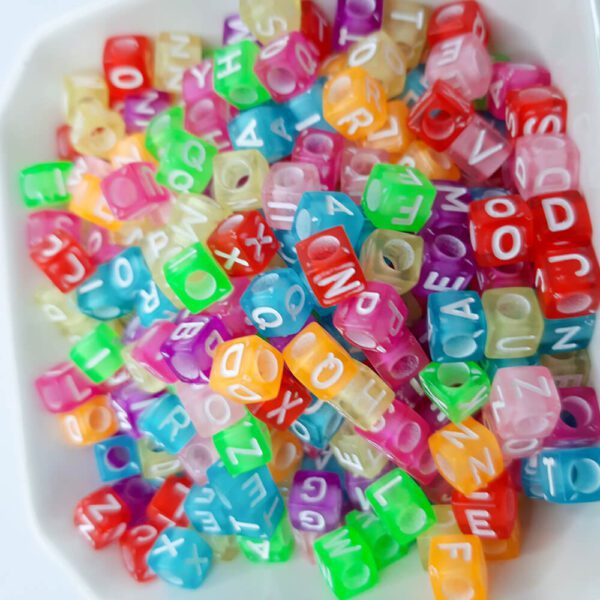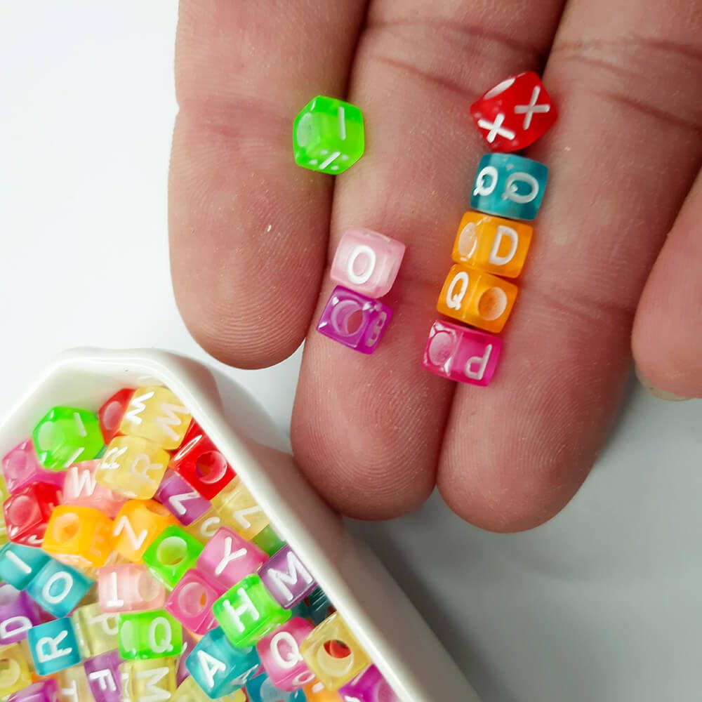 Miçanga Letras Alfabeto Dadinho Translucido 6x6mm- 50 gramas