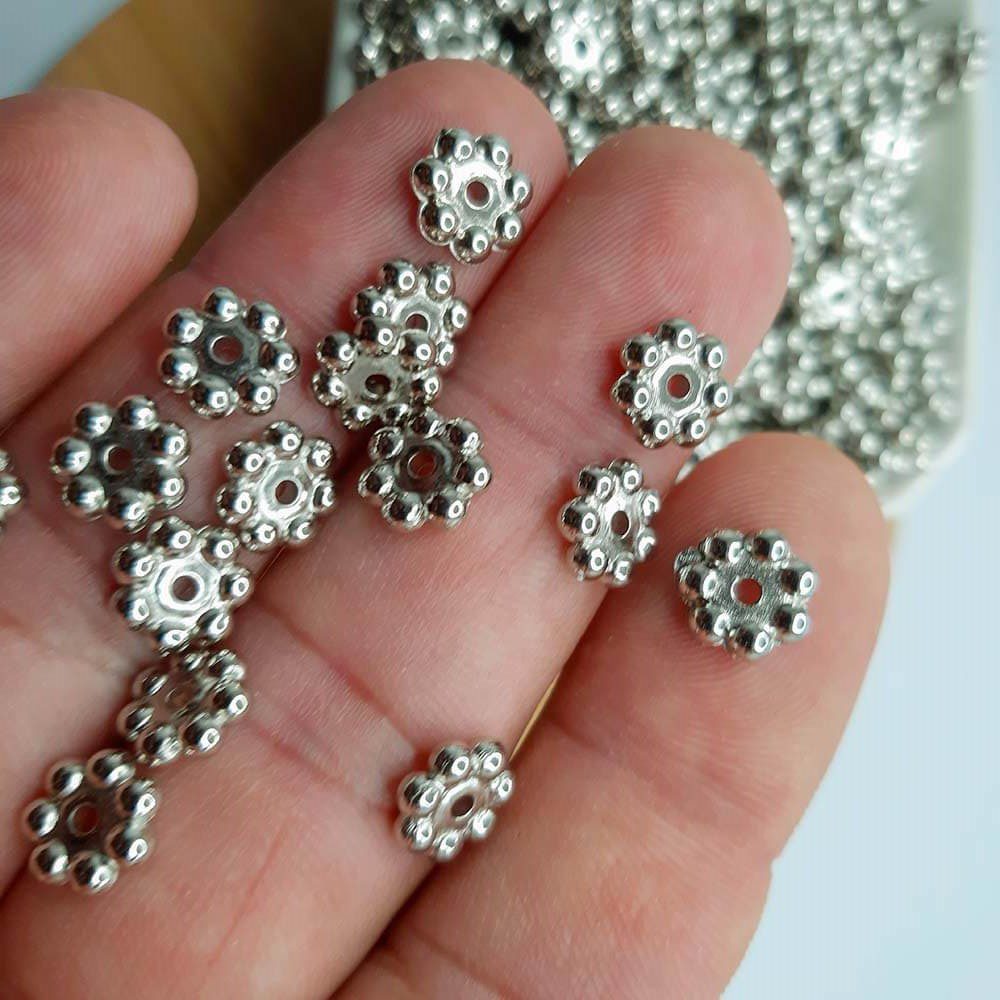 -Miçanga para Pulseira Entremeio Flor Prata ABS 8mm